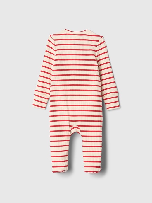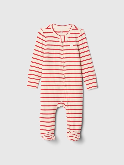 - Soft, stretch cotton-blend, ribbed-knit footed one-piece.
