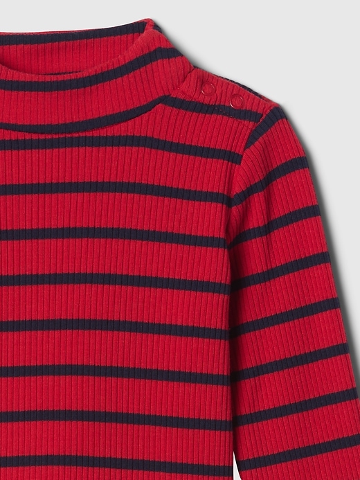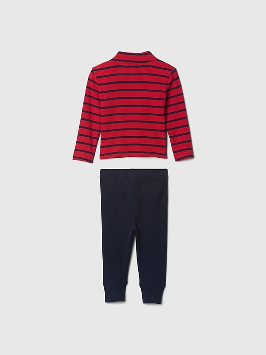 - Soft, stretch knit ribbed mockneck and pull-on pants set.