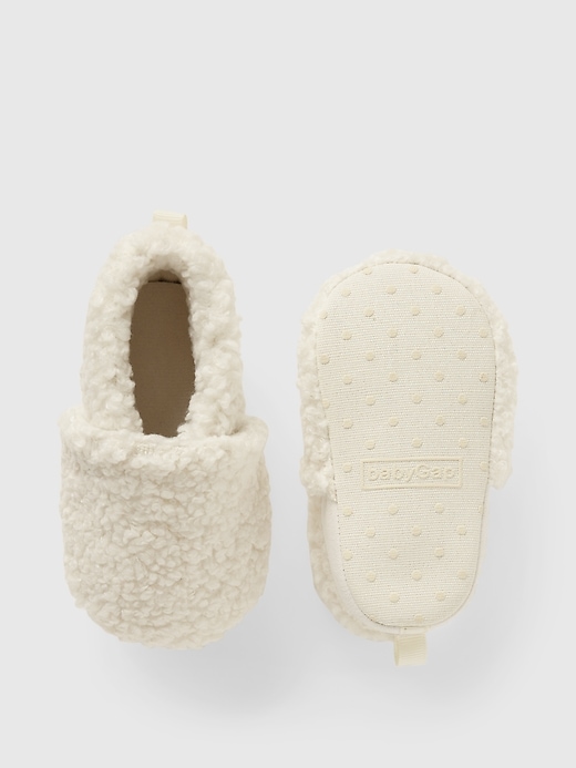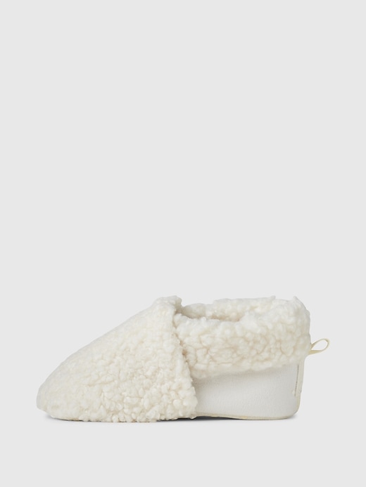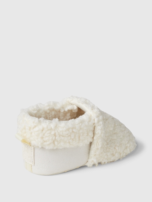 - These booties are made with a cozy sherpa and vegan suede upper with a soft jersey lining.