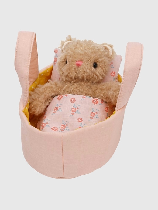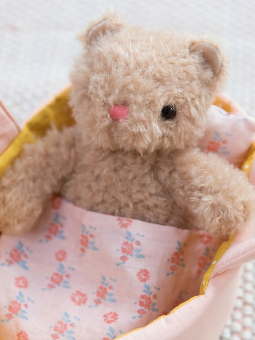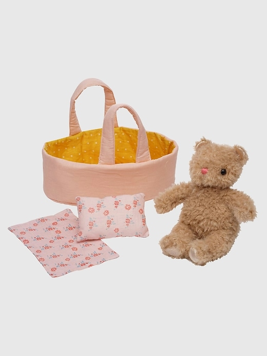 Moppettes Bea Bear Stuffed Animal with Bassinet and Blanket Pillow