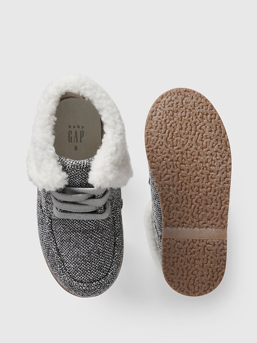 - These boots are made with a vegan suede or knit upper and cozy sherpa lining.