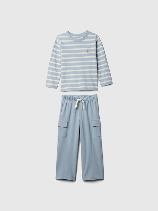 - Soft cotton T-shirt and cargo pants set.