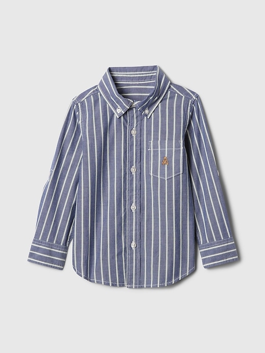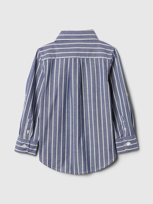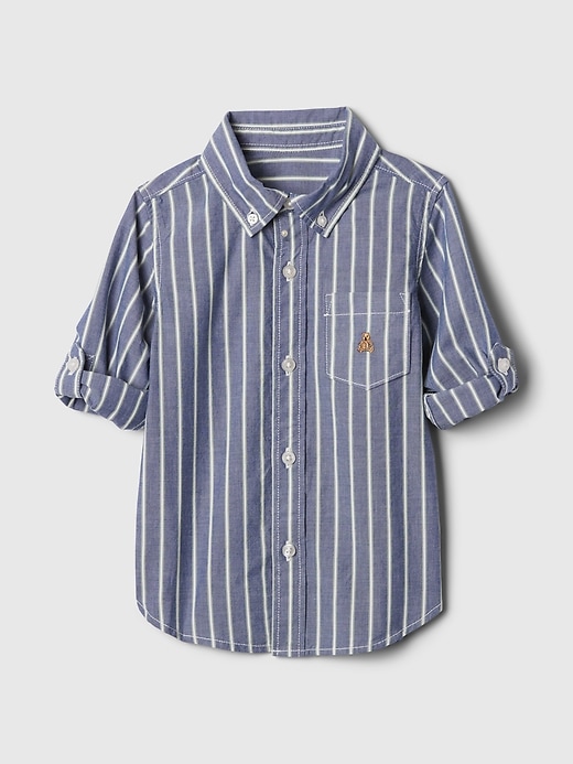 - Long sleeves with roll-up cuffs.