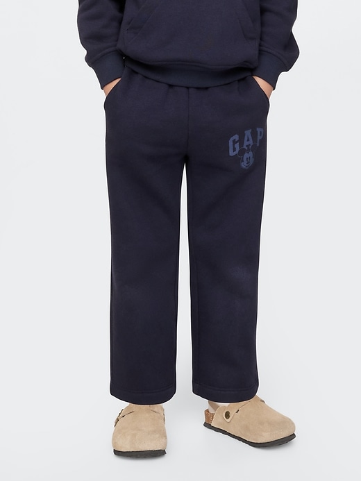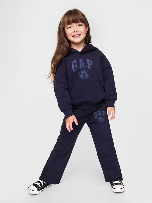 - Gap arch logo with Disney Mickey Mouse graphic at thigh.