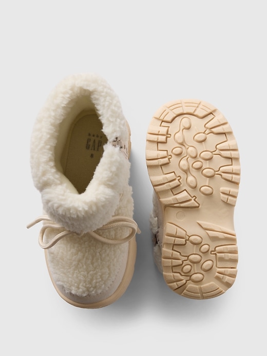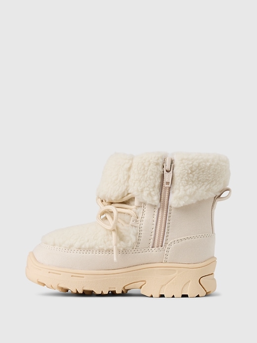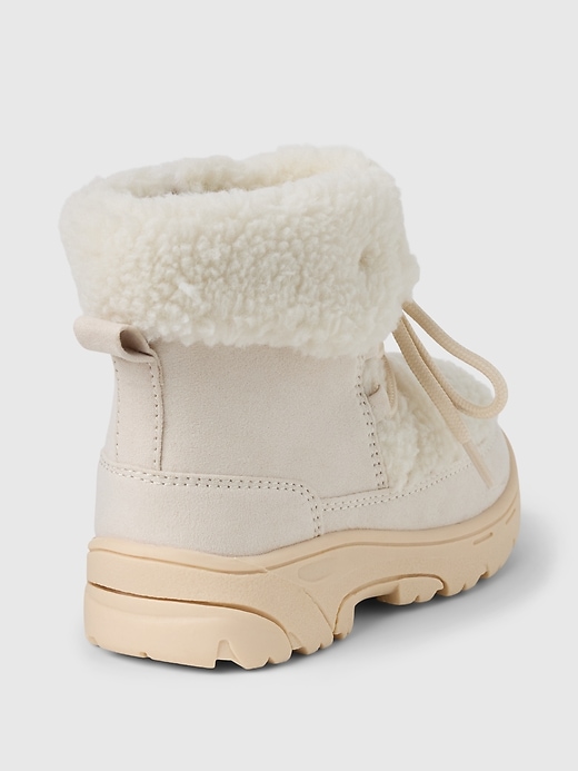 - These boots are made with vegan suede and cozy sherpa upper.