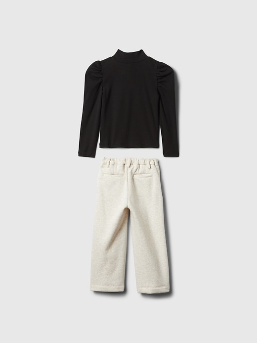 - Soft, stretch rib mockneck shirt and soft cotton-blend trousers outfit set.