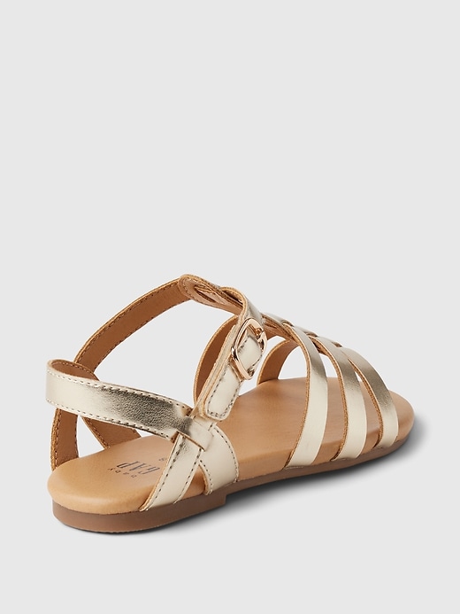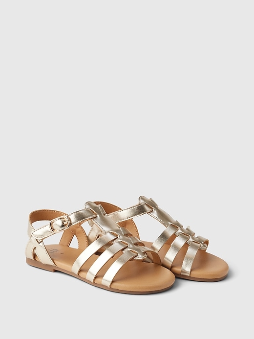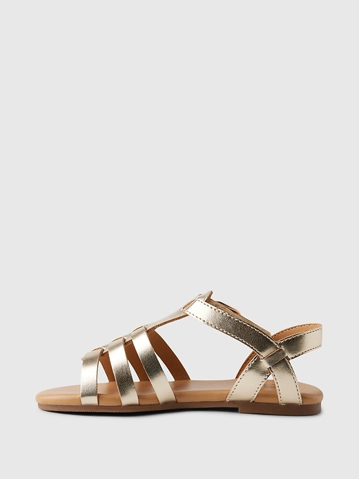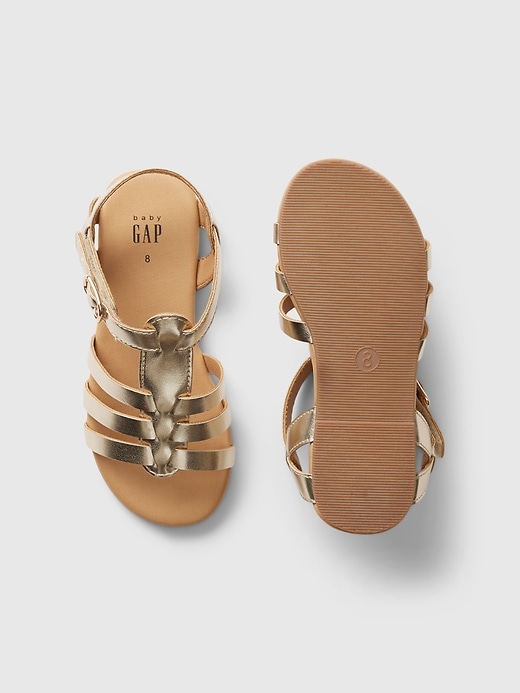 - These sandals are made with a metallic faux leather upper.