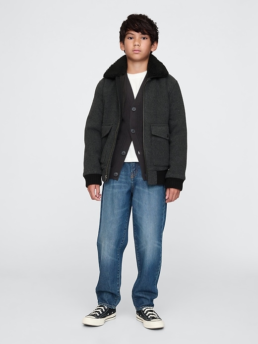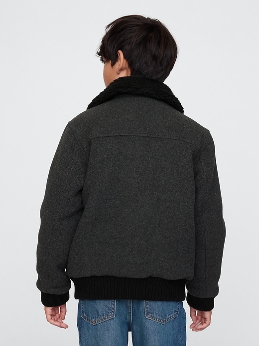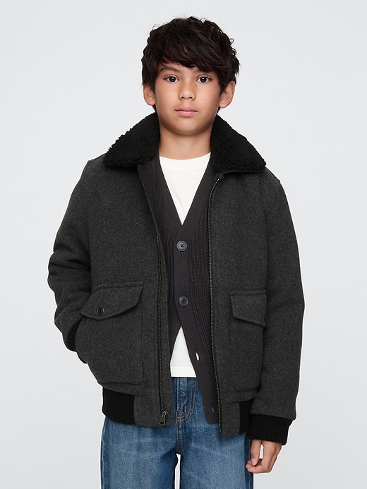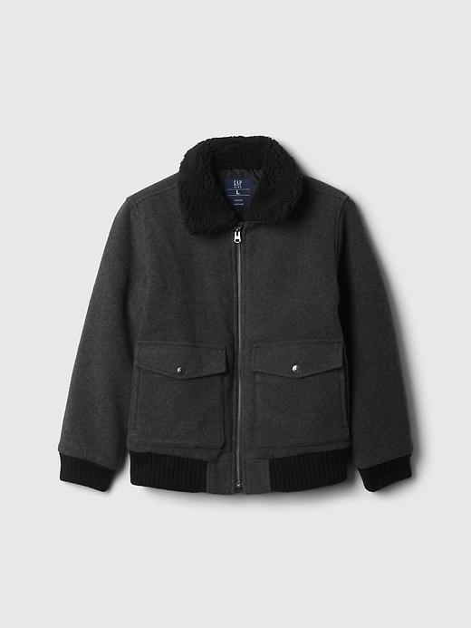 - Smooth wool-blend, sherpa-collar bomber jacket.