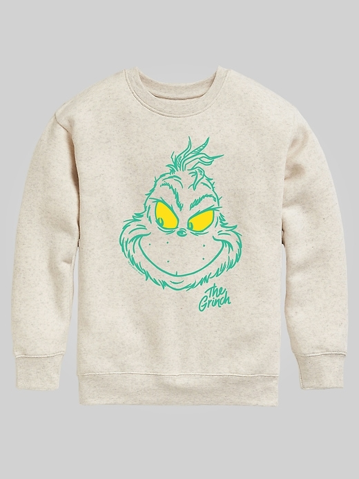 Kids Dr Seuss the Grinch Face Crew Fleece Graphic Sweatshirt