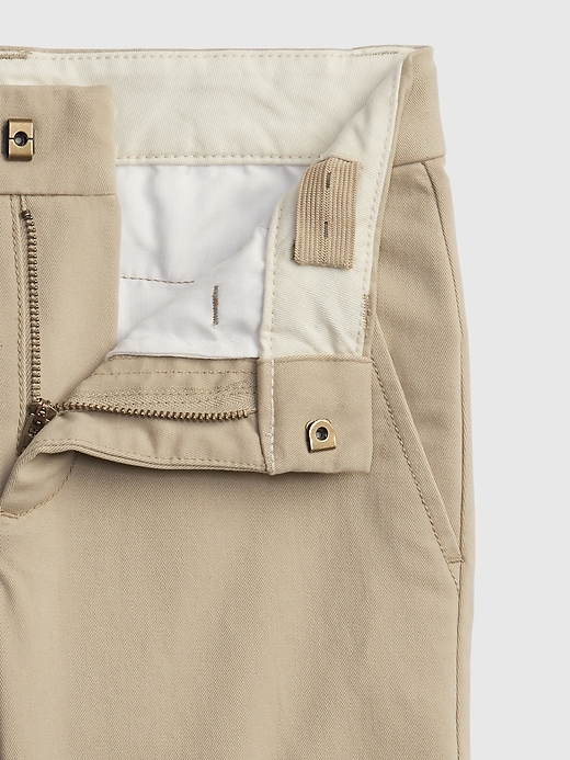 - Button at waist (sizes 4-8 have a hook & bar closure beneath faux snap for easy on and off), zip fly.