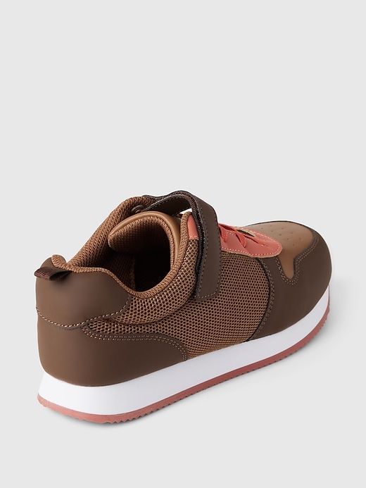 - These sneakers are made with a vegan leather and mesh upper.