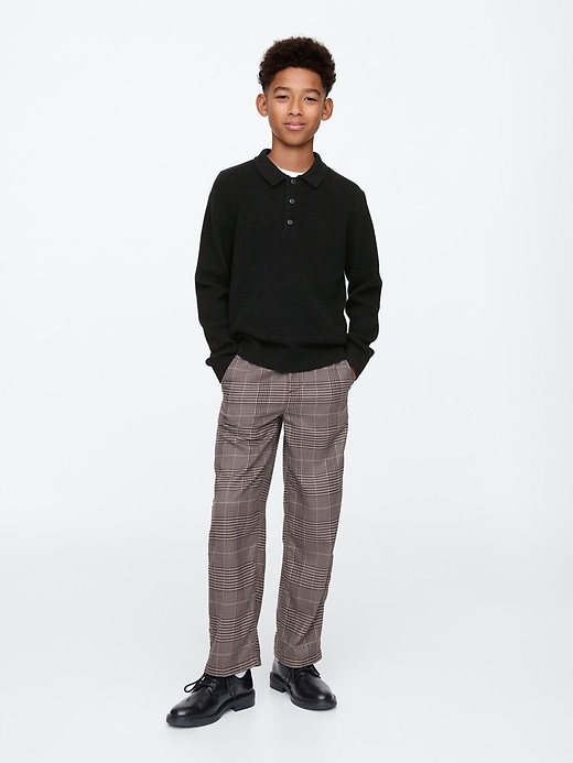 - Polo collar, button placket.