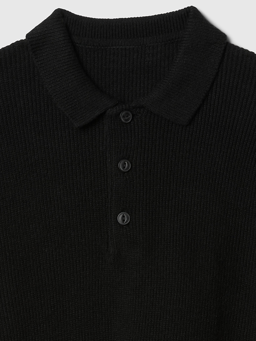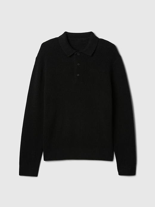 - Supersoft ribbed cotton-blend polo sweater.
