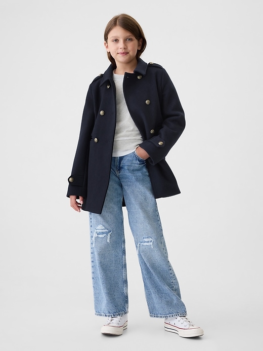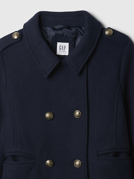 - This peacoat is made with 50% recycled polyester. Compared to virgin materials, using recycled materials helps to reduce resource use and waste.