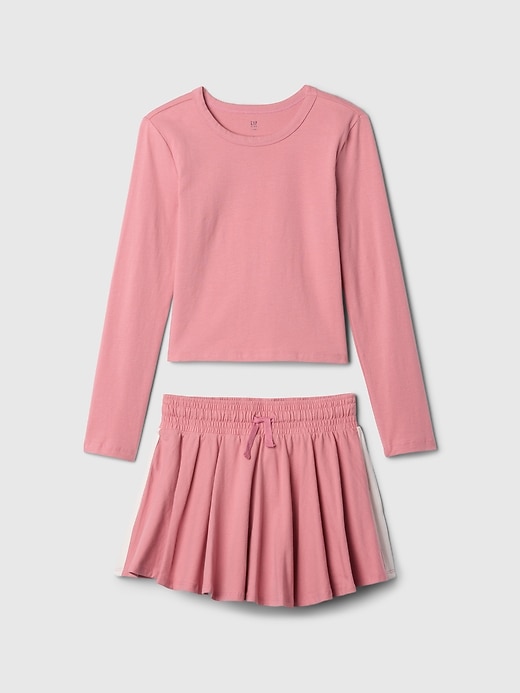 - Soft cotton-blend shirt and skort set.