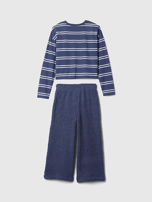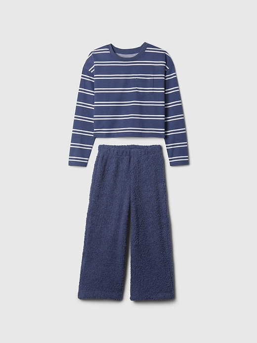 - Soft jersey pajama top and chenille pants set.