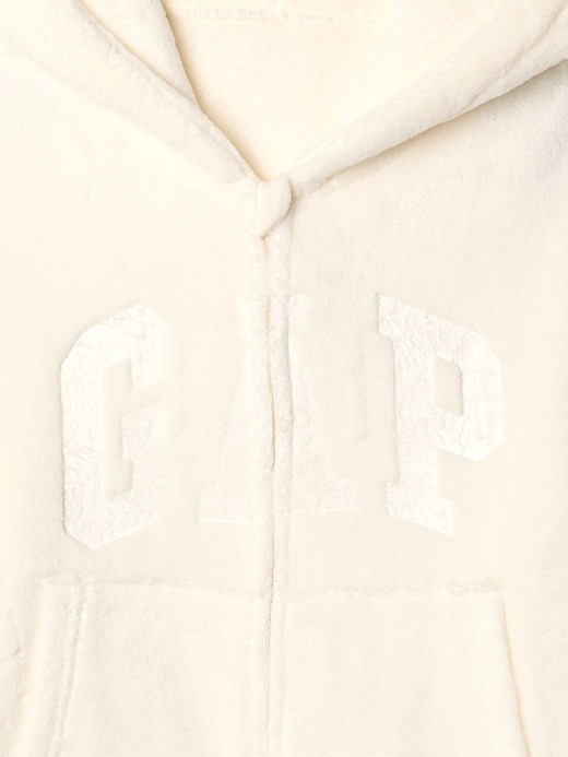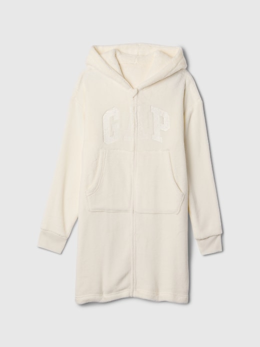 - This hoodie robe is made with 100% recycled polyester sherpa. Compared to virgin materials, using recycled materials helps to reduce resource use and waste.