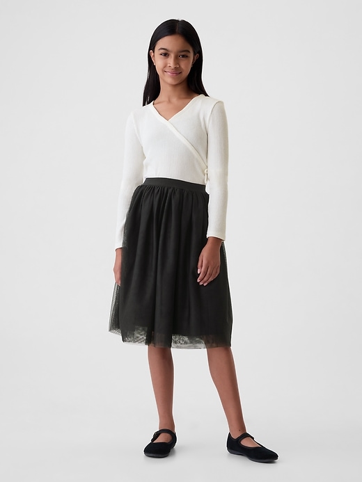 - Layered tulle midi skirt with soft cotton lawn lining.