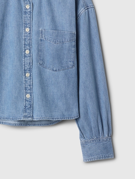 - Authentic, oversized denim shirt.