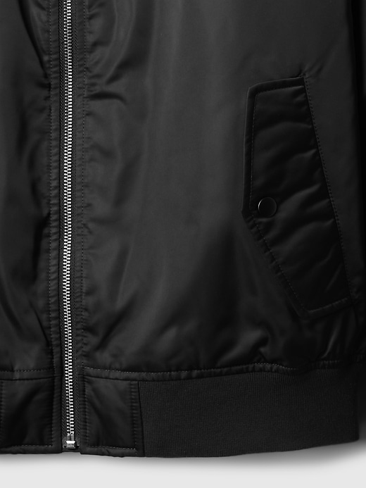 - Smooth woven bomber jacket.