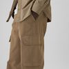 - Details: Pull-on waist with drawcords, front slant pockets, side flap cargo pockets, & back welt pockets.