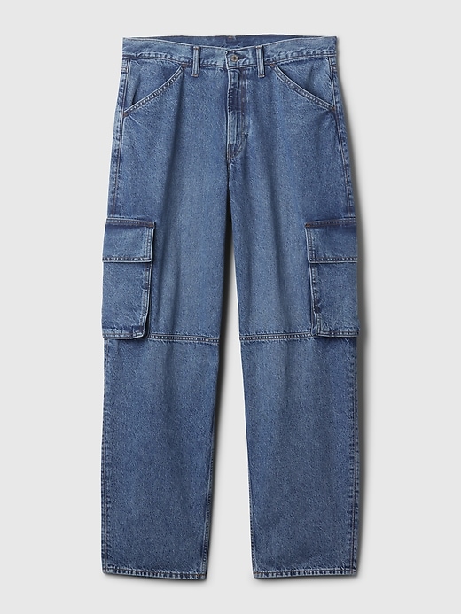 - Look: A cargo baggy jean in medium indigo wash.