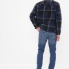 - Look: A classic five-pocket jean in a dark indigo wash with fading & whiskering.