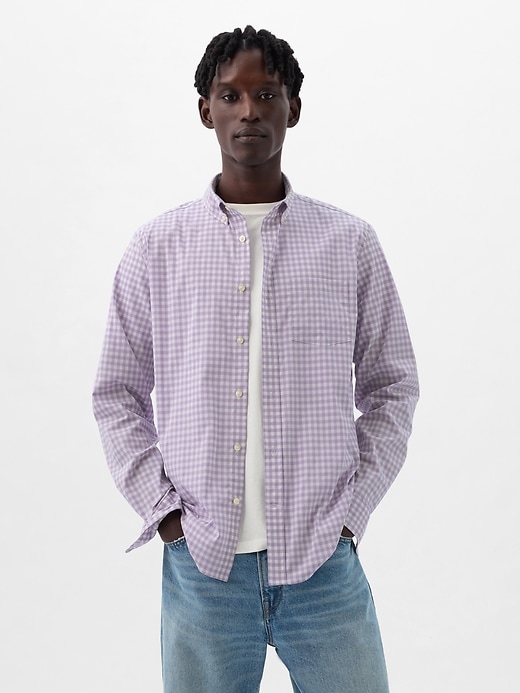 - Breathable stretch poplin made with COOLMAX™ moisture-wicking, quick-drying technology and EcoMade fiber, which comes from 100% recycled materials.