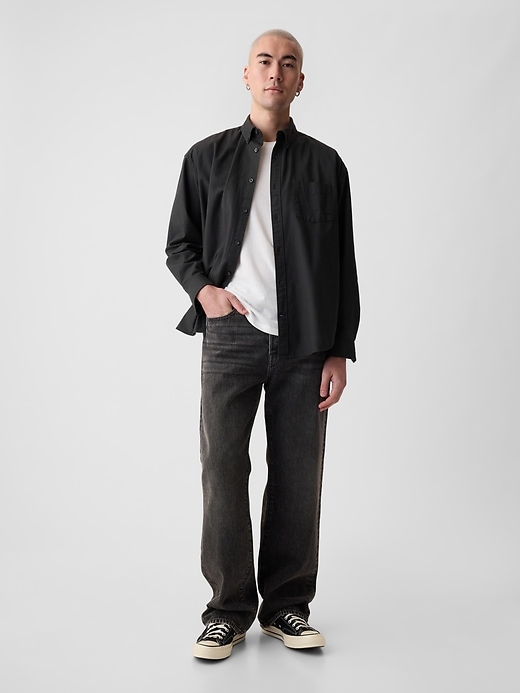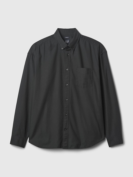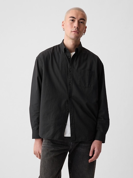 - Smooth garment-dyed cotton oversized Oxford shirt.