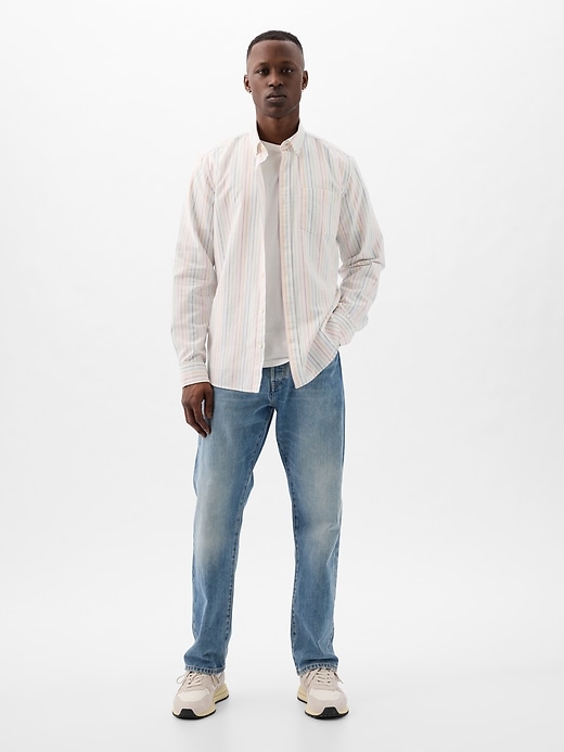 - Smooth woven stretch cotton Oxford shirt.