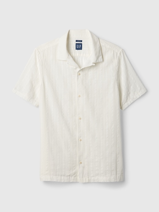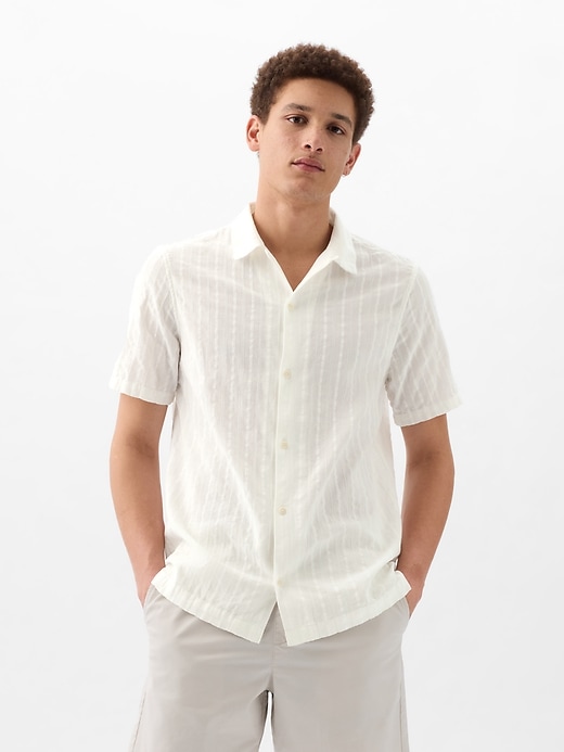 - Soft, textured cotton shirt.