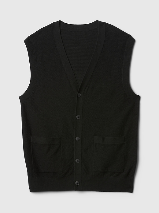 - Supersoft, textured cotton-blend sweater vest.