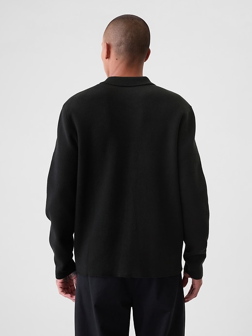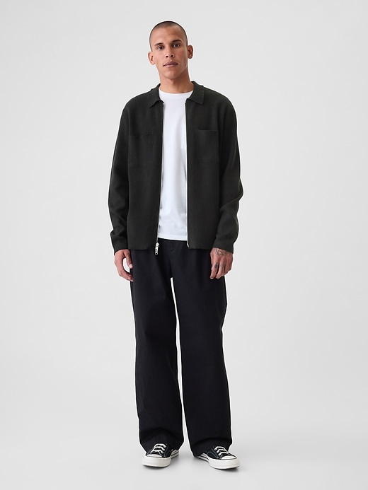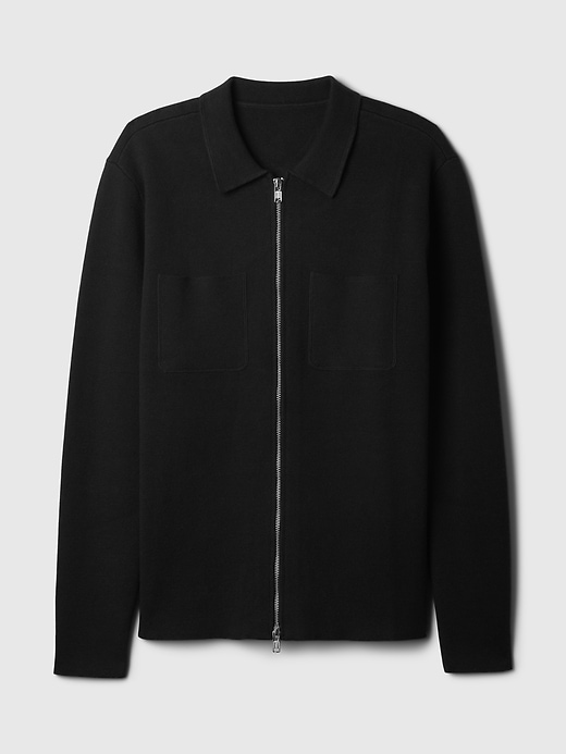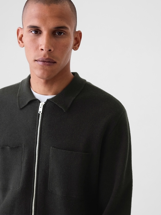 - Soft sweater knit, boxy fit full-zip blazer.