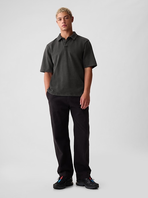 - Polo collar with button placket.