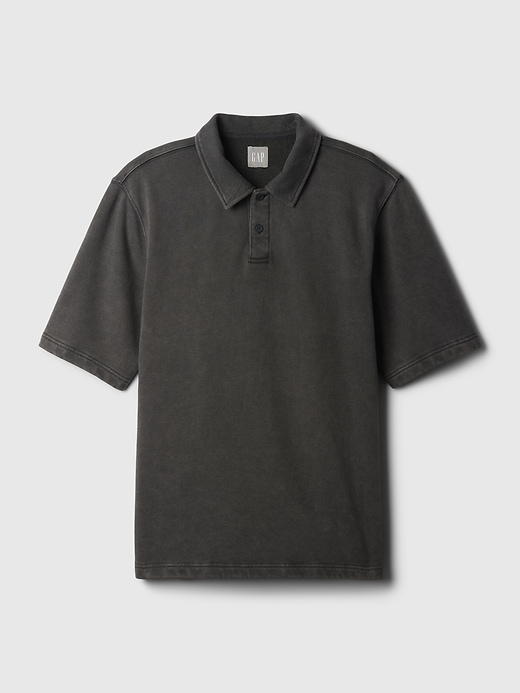 - Soft cotton-blend fleece polo-style sweatshirt.