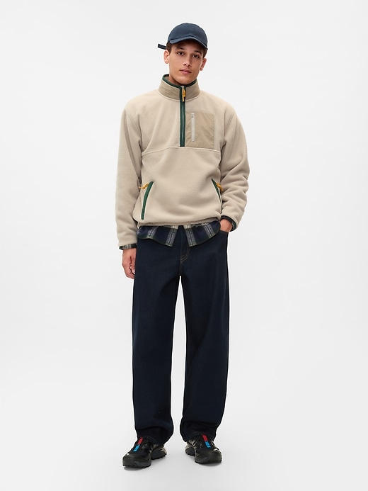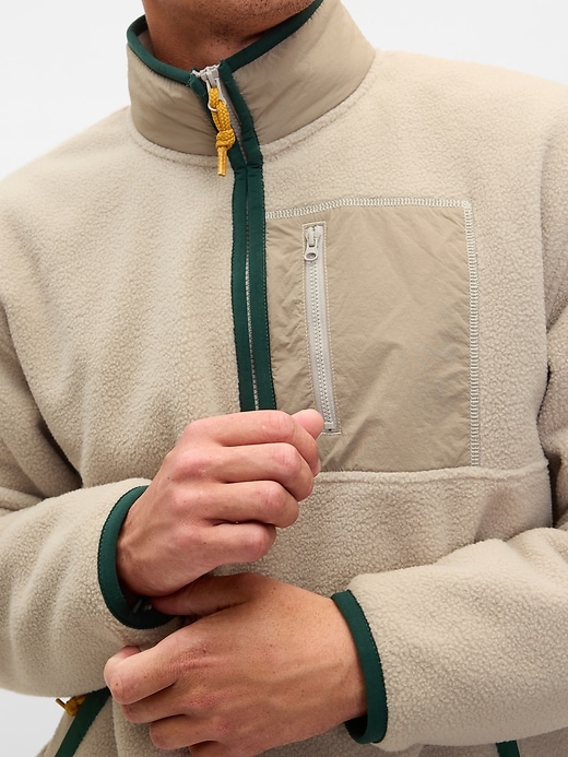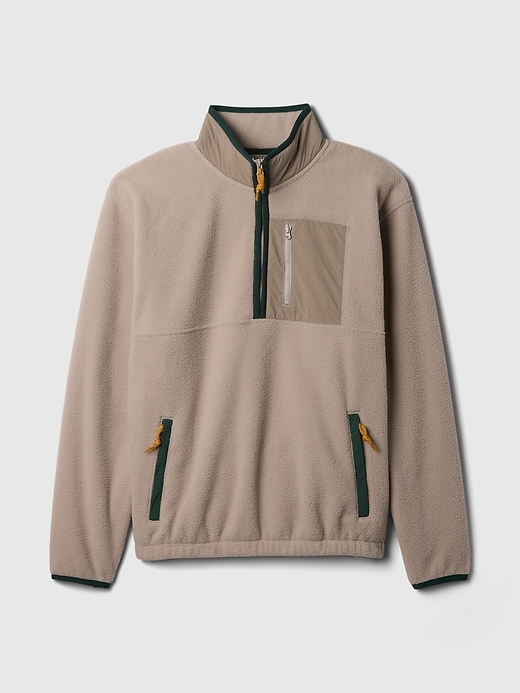- This pullover is made with 25% recycled polyester. Compared to virgin materials, using recycled materials helps to reduce resource use and waste.