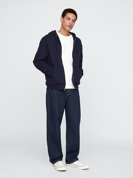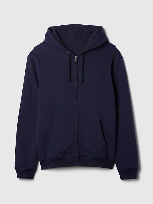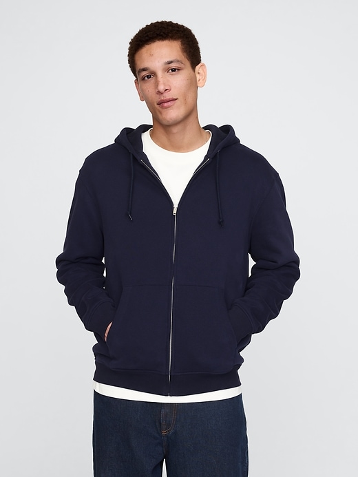 - Soft cotton-blend fleece full-zip hoodie with a thermal waffle-knit lining.