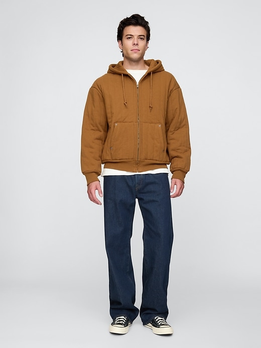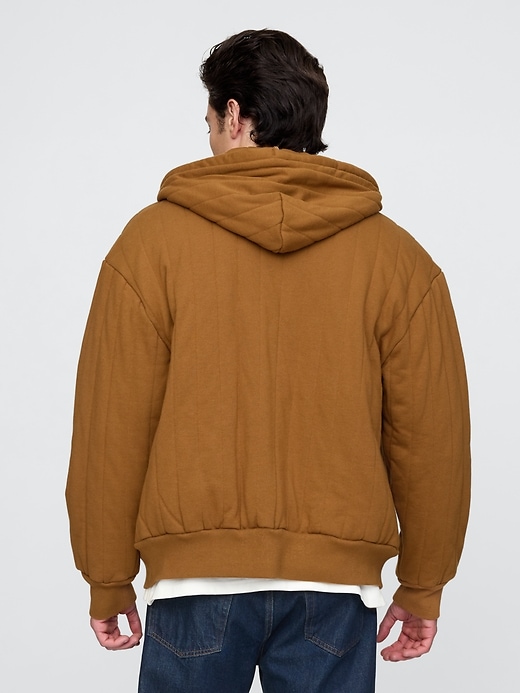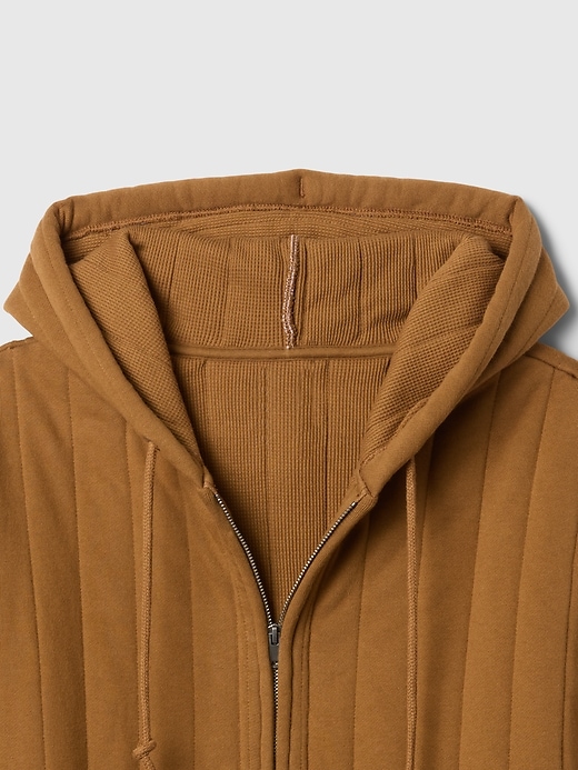 - Soft cotton-blend, quilted fleece full-zip hoodie with a thermal waffle-knit lining.