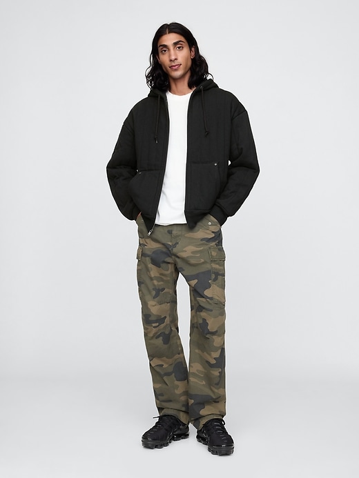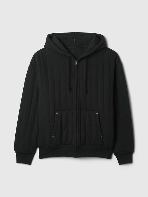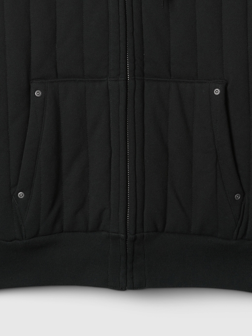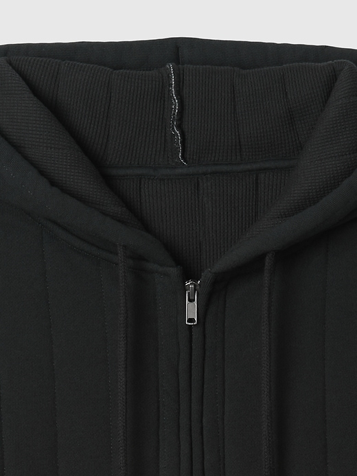 - Soft cotton-blend, quilted fleece full-zip hoodie with a thermal waffle-knit lining.