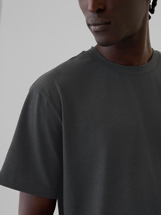 - Soft, stretch performance T-shirt in moisture-wicking, breathable jersey.