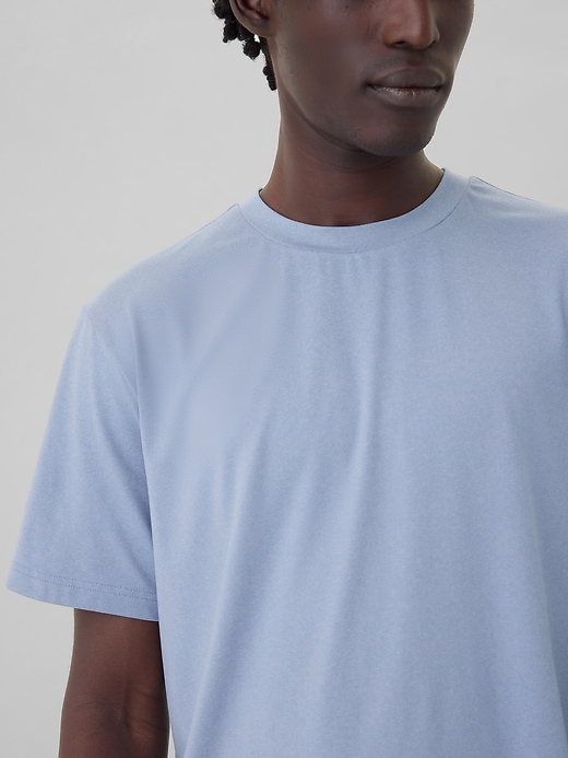 - Soft, stretch performance T-shirt in moisture-wicking, breathable jersey.