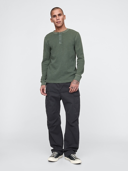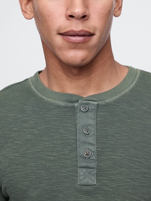- Crewneck with Henley button placket.