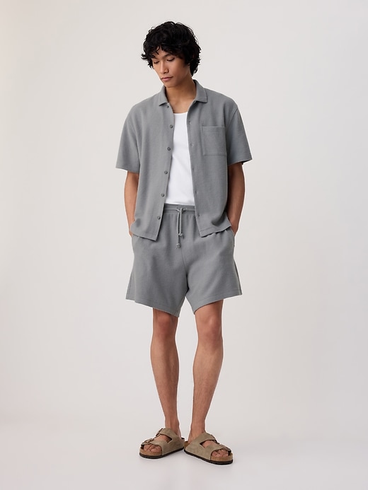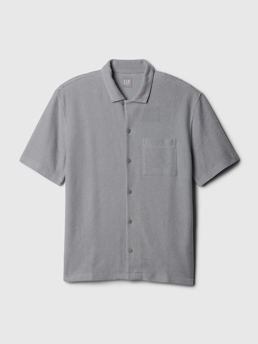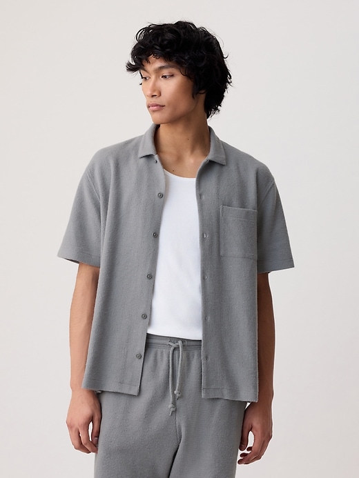 - Soft cotton-modal blend, waffle-knit shirt.