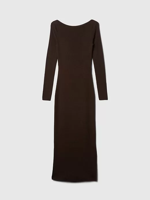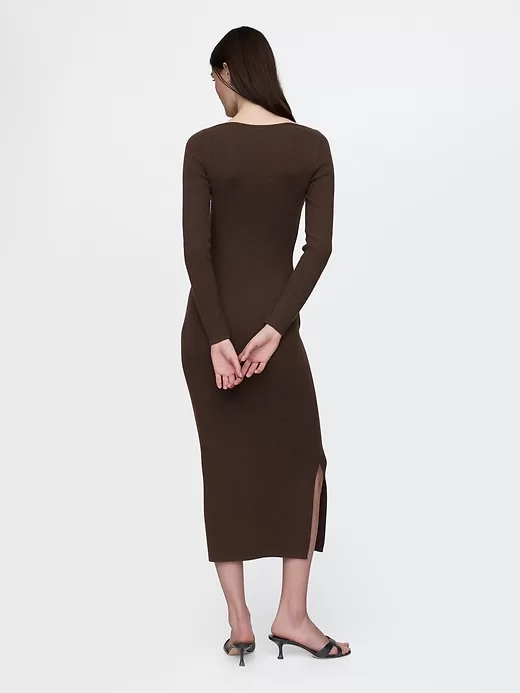 - Soft, stretch nylon-wool blend ribbed knit sweater dress.