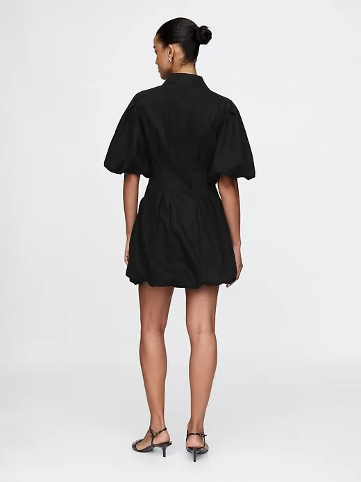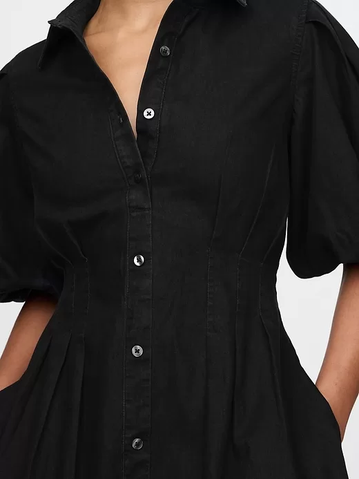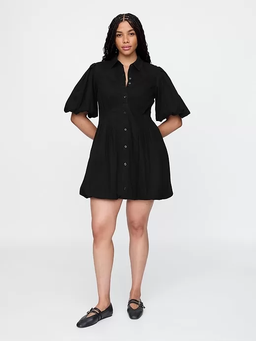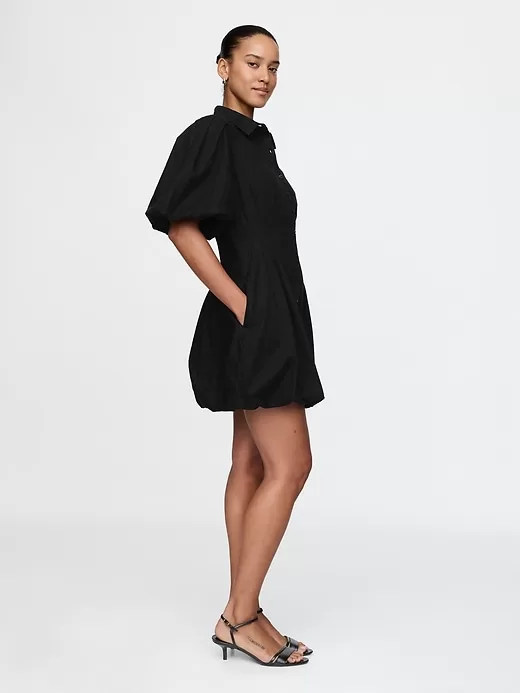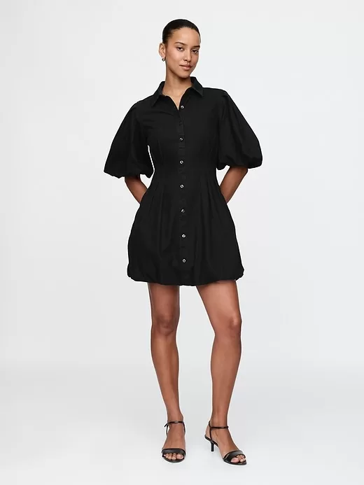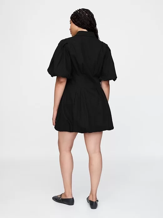- Fit: Slim. A blouson silhouette that sits close to the chest & cinches above the waist to create fullness.