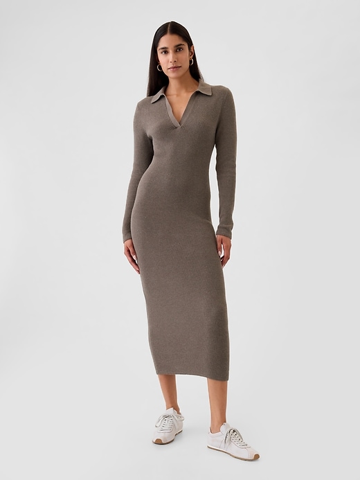CashSoft Rib Midi Polo Sweater Dress
