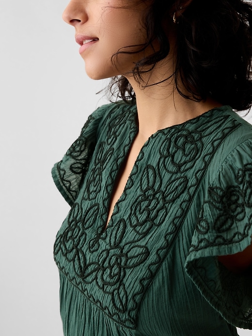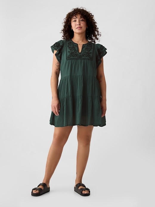 Crinkle Gauze Embroidered Mini Dress