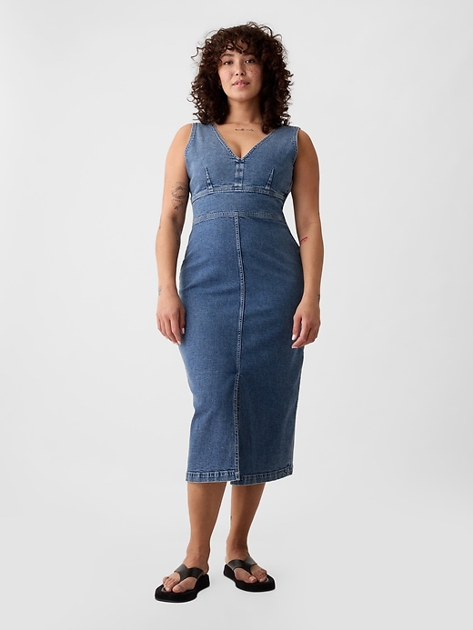 - Responsibly Made: This denim dress is made with 5% recycled cotton and is part of our water-saving Washwell program. Compared with conventional wash methods, Washwell uses at least 20% less water and has saved over a billion liters of water since 2016.