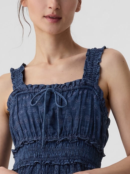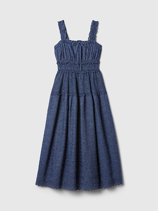 - Allover eyelet details.