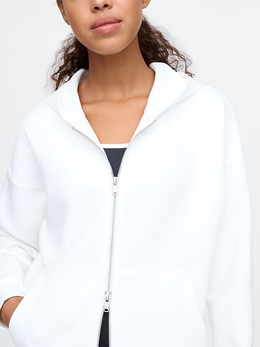 - Soft, stretch cotton-blend Scuba hoodie.